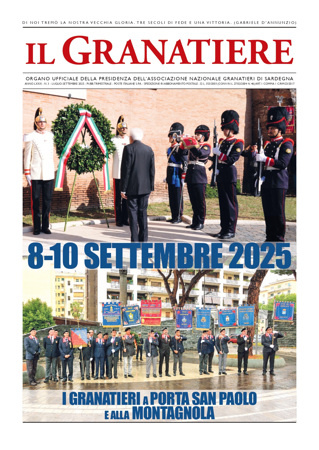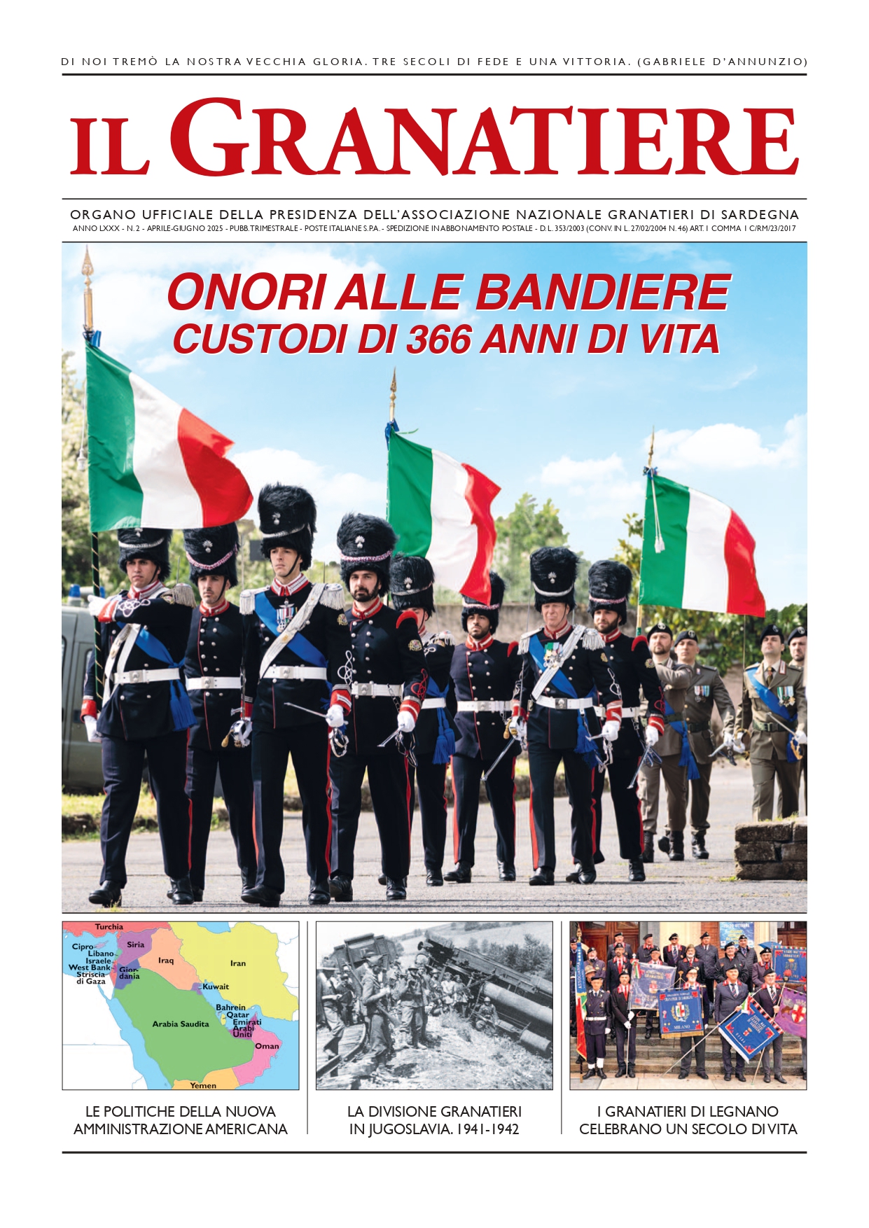 Come disposto dal Consiglio Nazionale dell’Associazione nazionale Granatieri di Sardegna, in data 15 febbraio 2018, IL GRANATIERE n.2/2025 è pubblicato, su questo sito, in concomitanza con la consegna in tipografia per la stampa de IL GRANATIERE n.3/2025.